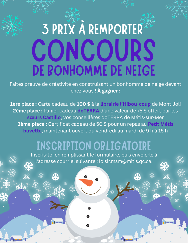 Consultez la page Facebook de la Ville de Métis-sur-Mer pour plus d'informations sur les activités à venir !
