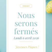 Nous sommes fermée lundi le 6 avril